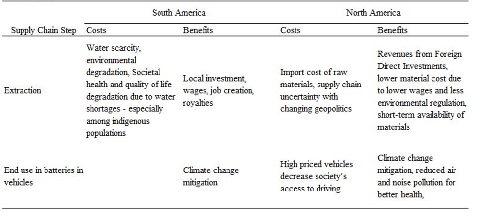 Table 1. Distribution across South and North Americas of Social and Environmental Costs and Benefits of the Current Lithium Supply Chain for EV Applications